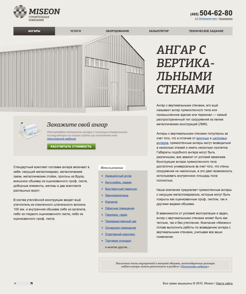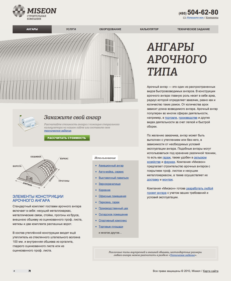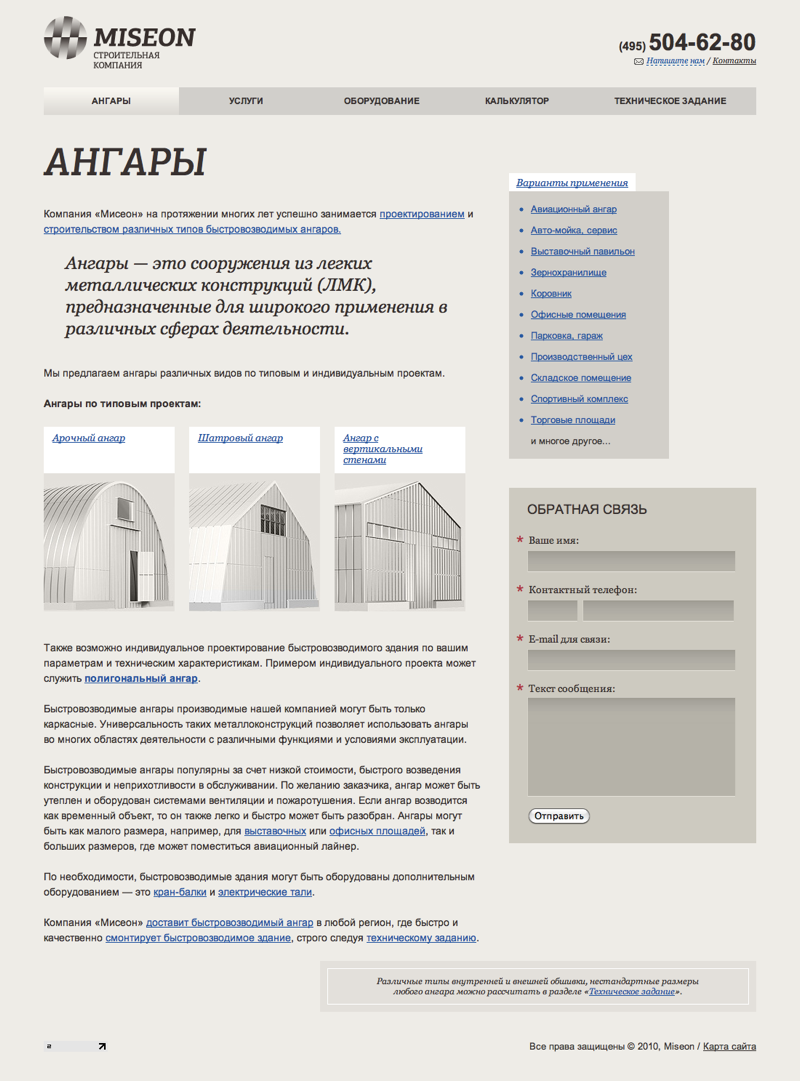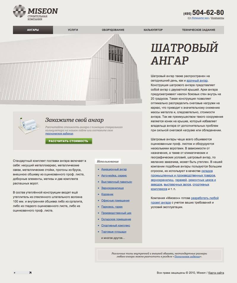 Для каждого вида ангаров разработана сделана отдельная страница.