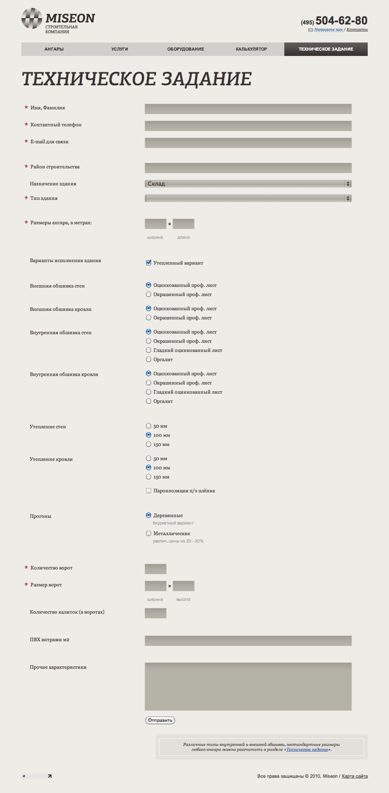 Сайт строительной компании «Мисеон»
