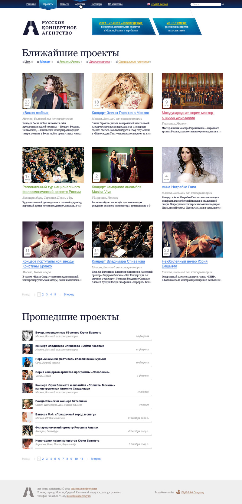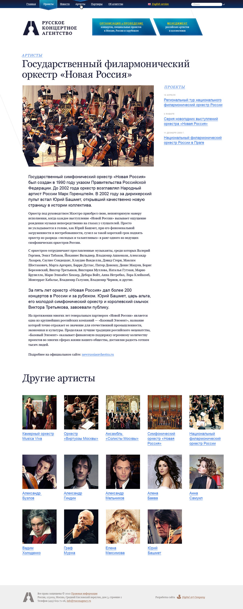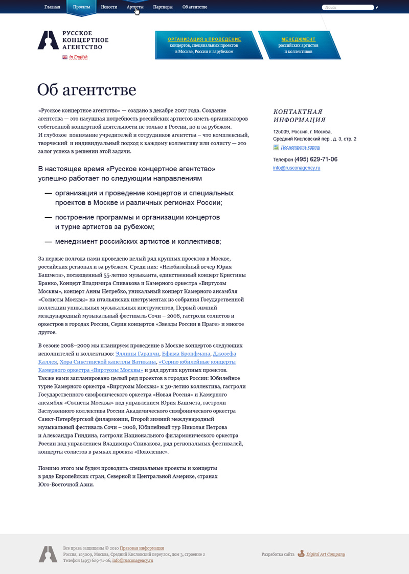 Дизайн корпоративного сайта «Русского Концертного Агентства»