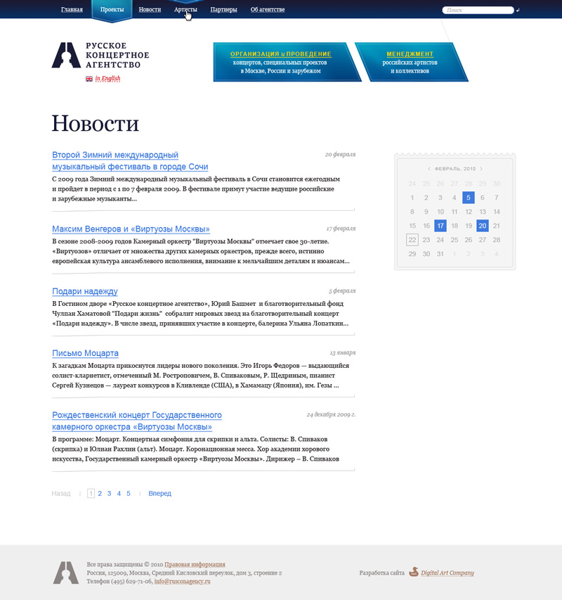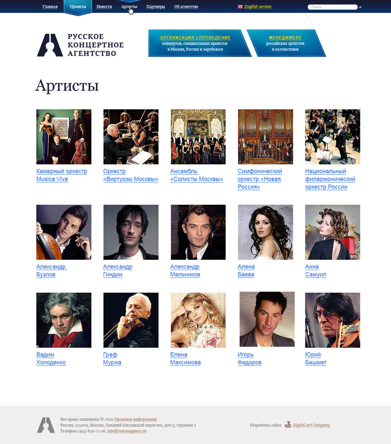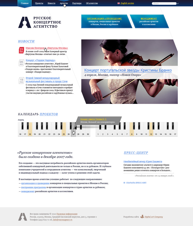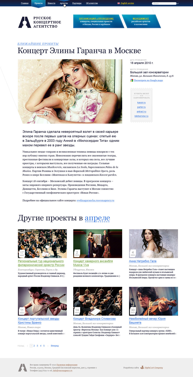 Дизайн корпоративного сайта «Русского Концертного Агентства»