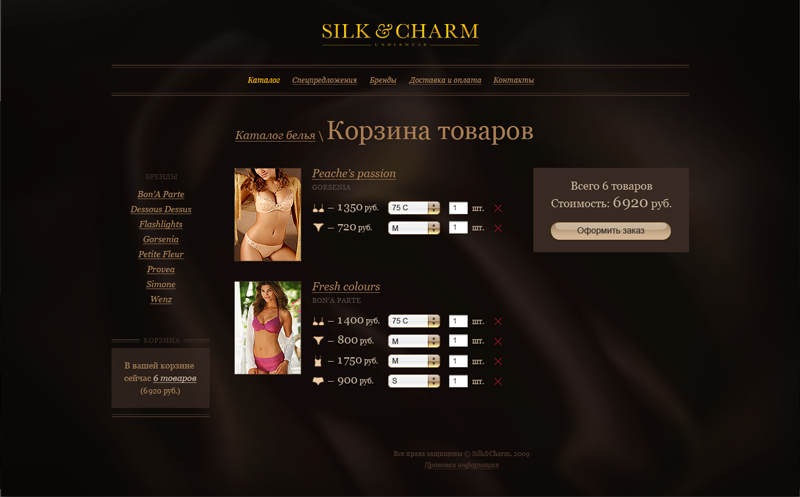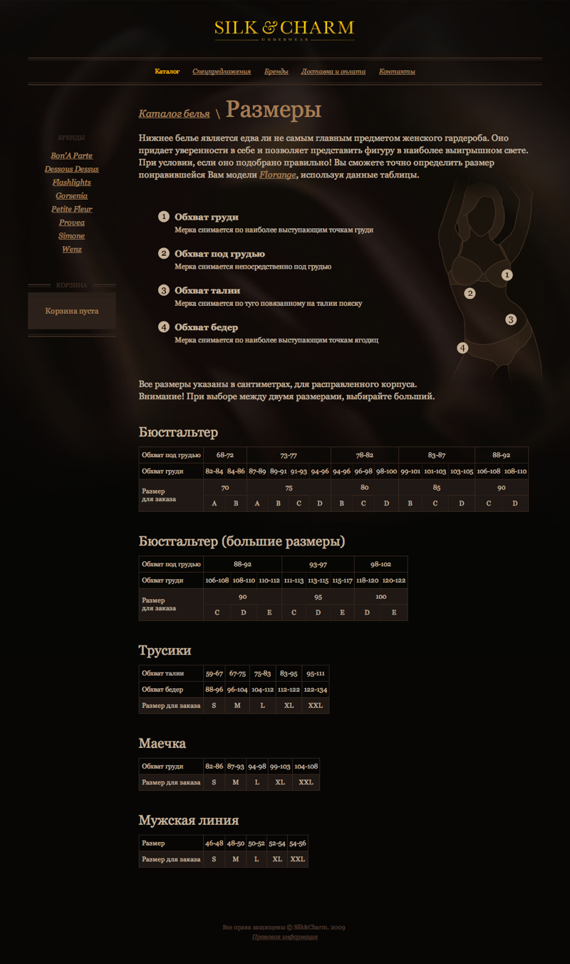 Задача: Разработать интернет-магазин женского белья.